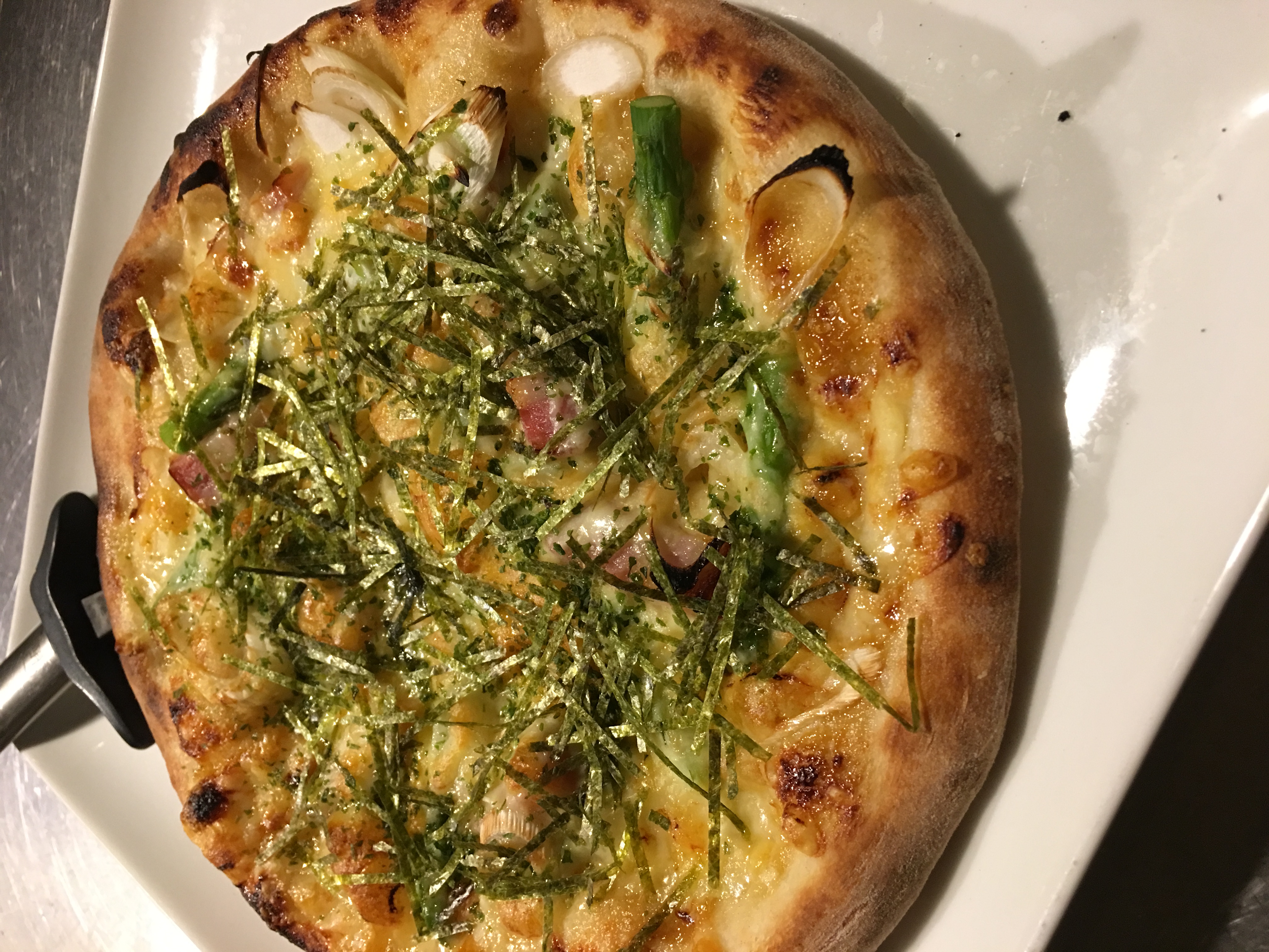 裏メニューにベーコンとアスパラの和風ピザ用意してまーす(・ω・)ノ