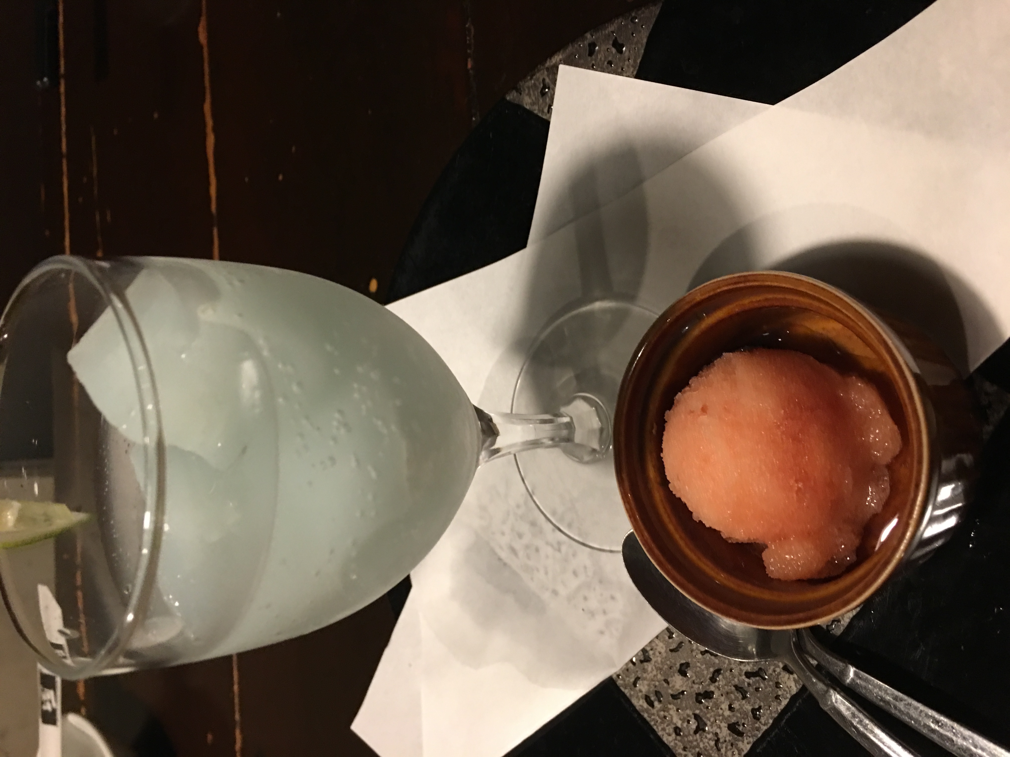 裏メニューにラムネのわらび餅にブラットオレンジのシャーベットを添えて