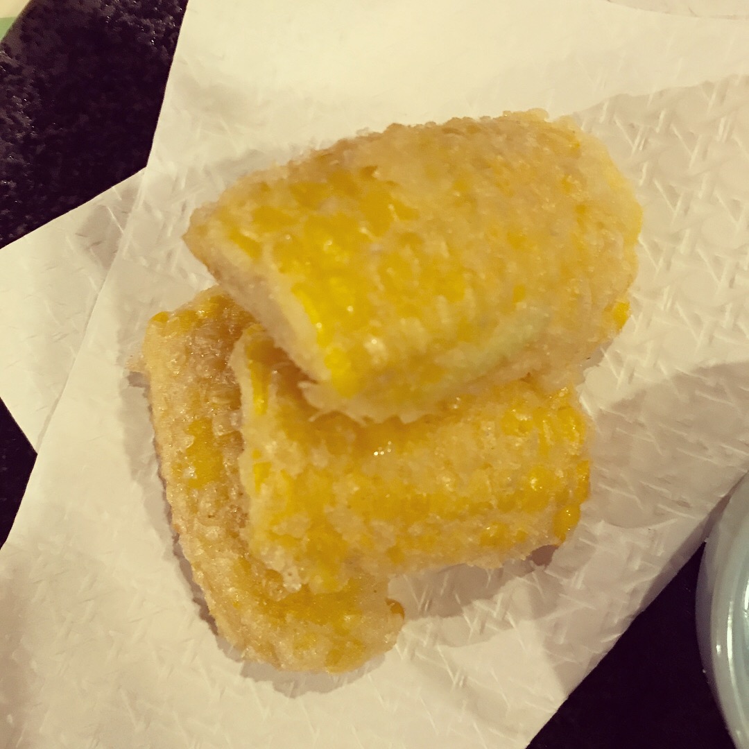とうもろこしですね🌽かき揚げではなく、芯を少し残してカットして天ぷらにしました♪少しのお塩でとうもろこしの甘さを堪能してください♪