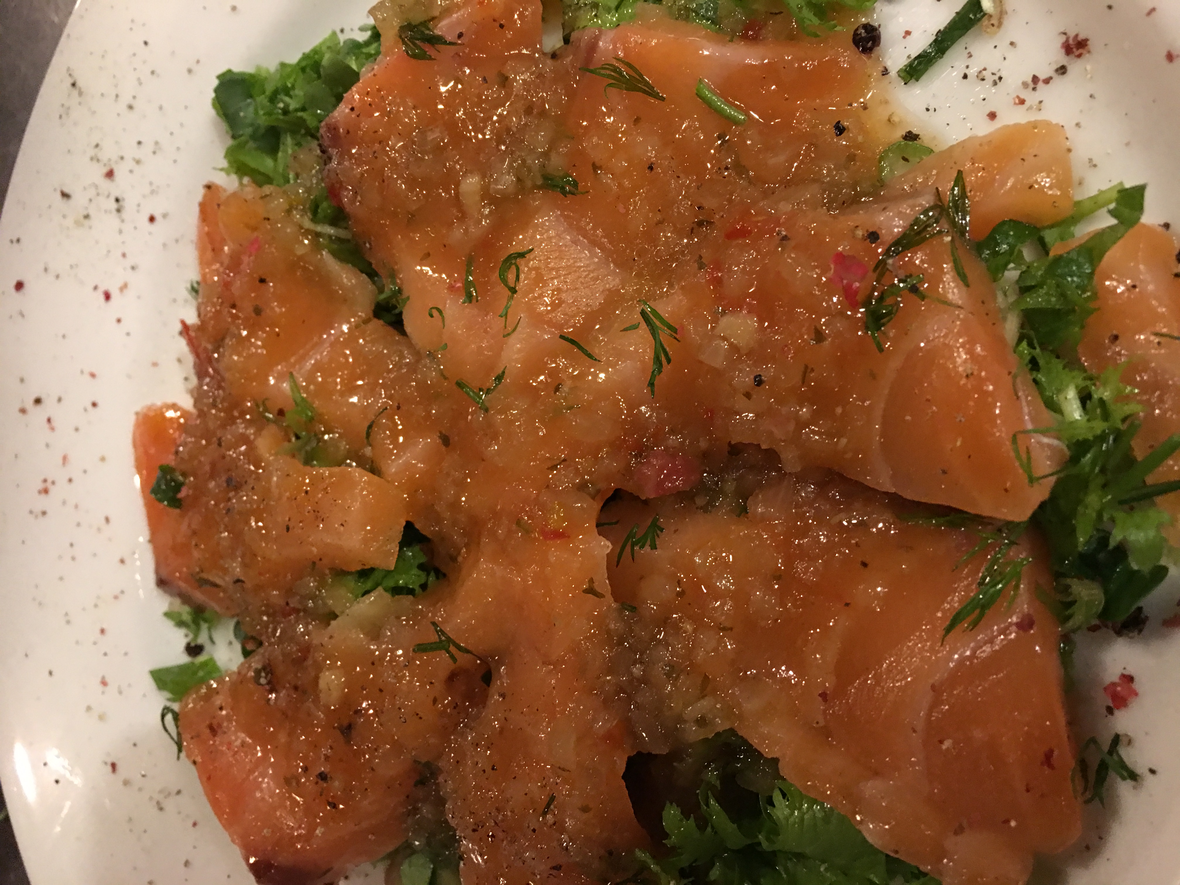 本日自家製サーモンマリネのカルパッチョありまーす(o^^o)