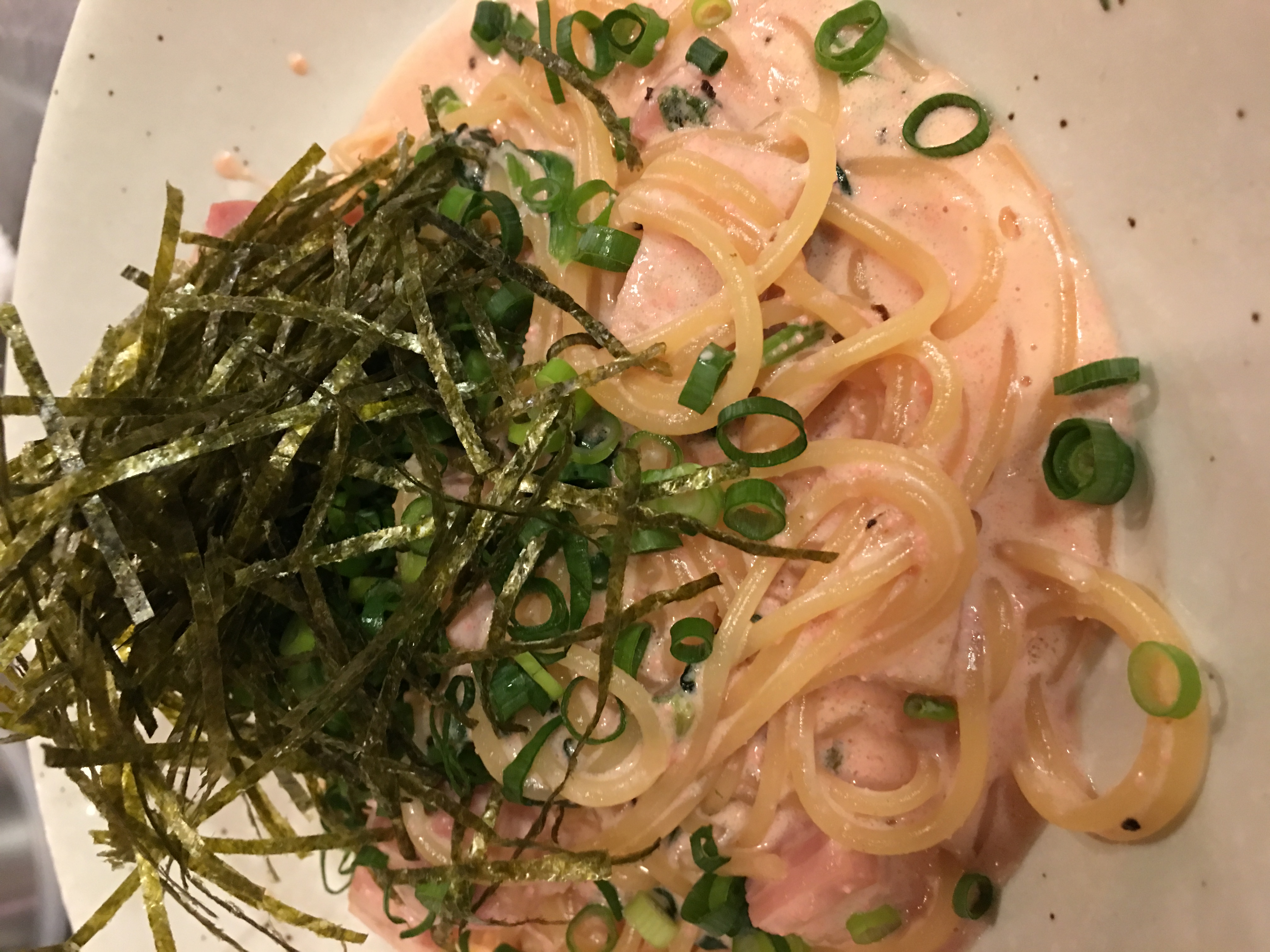 今日は明太子クリームパスタご用意してみたりして(๑・̑◡・̑๑)