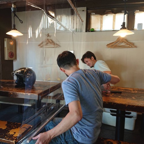 カウンターにもビニールシート付けましたよぉぉ ご来店時に少しでものんびり過ごして頂ける様に、ない頭であれやこれ…